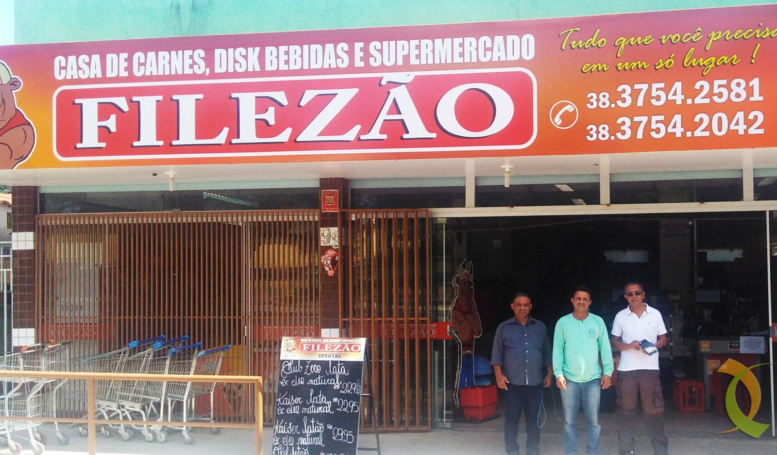 O Diretor Administrativo da Consolidar, Arlindo de Souza; o Presidente do Sinditrema - Sindicato dos Servidores Públicos de Três Marias, Pedro Roberto de Souza e o Diretor Presidente da Consolidar Aderbal Gomes, no estabelecimento Casa de Carnes e Supermercado Filezão (instalando um POS "maquininha de cartão" em um dos 14 estabelecimentos credenciados para atender o Cartão Sinditrema Card.
